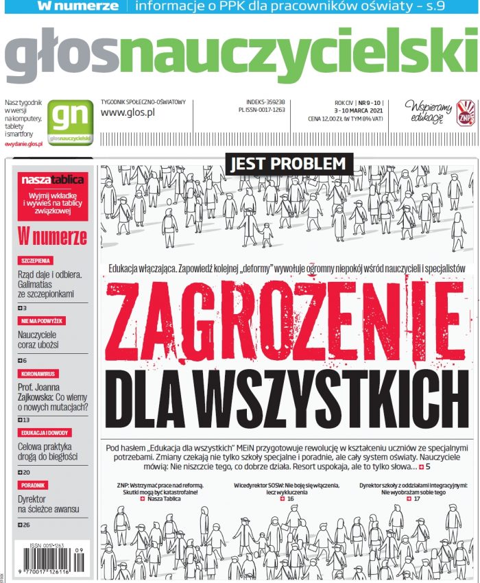 Pod hasłem „Edukacja dla wszystkich” MEiN przygotowuje rewolucję w kształceniu uczniów ze specjalnymi potrzebami. Zmiany czekają nie tylko szkoły specjalne i poradnie, ale cały system oświaty. ZNP ostrzega: Skutki mogą być katastrofalne! Resort uspokaja, ale to tylko słowa… Więcej w Głosie Nauczycielskim nr 9-10 z 3-10 marca br.