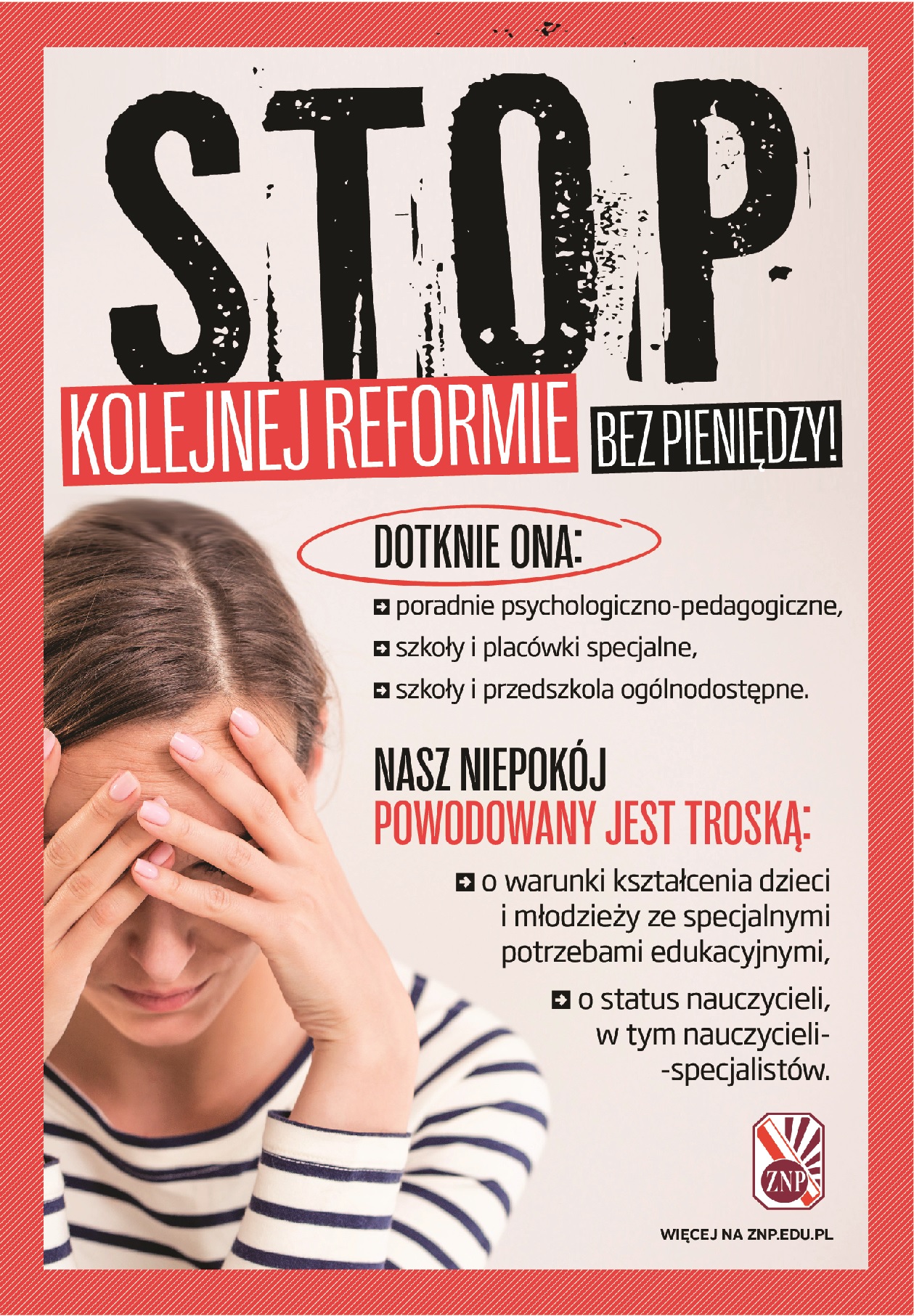 Ponadto należy mieć na uwadze, że niedawne zmiany strukturalne w systemie oświaty doprowadziły do znacznego pogorszenia warunków kształcenia dzieci i młodzieży (liczne klasy, dwuzmianowość, braki kadrowe), w tych warunkach nie jest możliwe właściwe zabezpieczenie potrzeb uczniów i wychowanków wymagających szczególnego wsparcia. Rządzący nie mogą po raz kolejny w nieodpowiedzialny sposób reformować oświaty. Skutki mogą być katastrofalne.