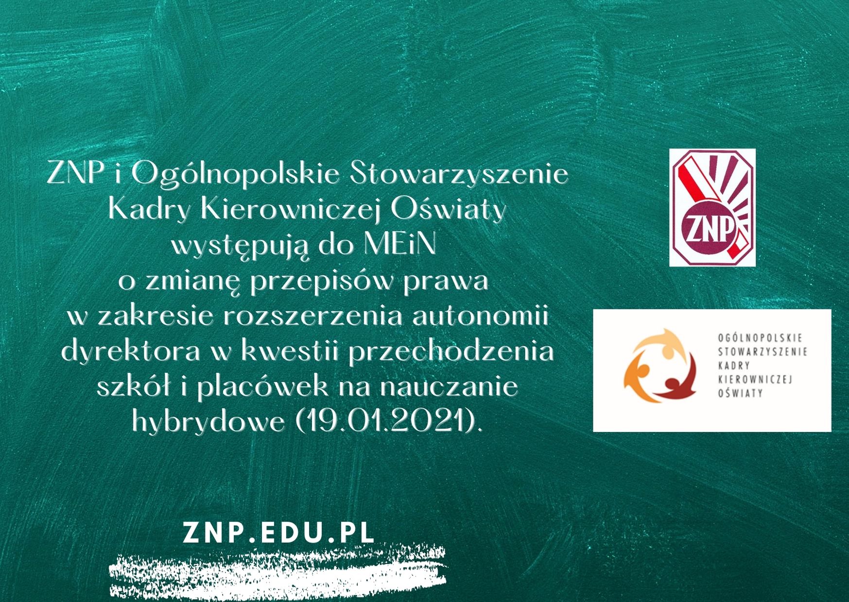Stanowisko Związku Nauczycielstwa Polskiego i Ogólnopolskiego Stowarzyszenia Kadry Kierowniczej Oświaty ws. możliwości wprowadzania hybrydowej edukacji przez dyrektorów szkół i placówek (19.01.2021)