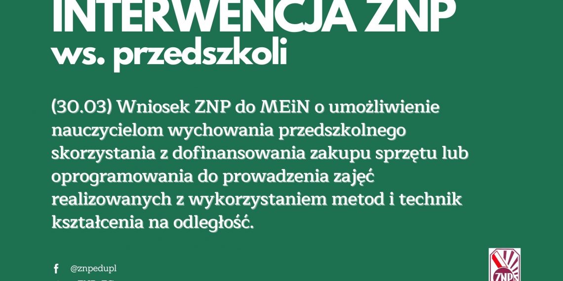 Wniosek ZNP do MEiN ws. dofinansowania zakupu sprzętu lub oprogramowania do prowadzenia zajęć na odległość w przedszkolach